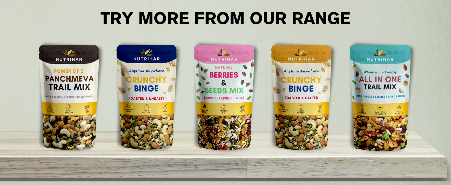 At Nutrihar, we’re transforming dry fruits and nuts into delightful, healthy snacks that go beyond the ordinary. Our goal is to offer you wholesome treats that are both exciting in flavor and innovative in presentation.